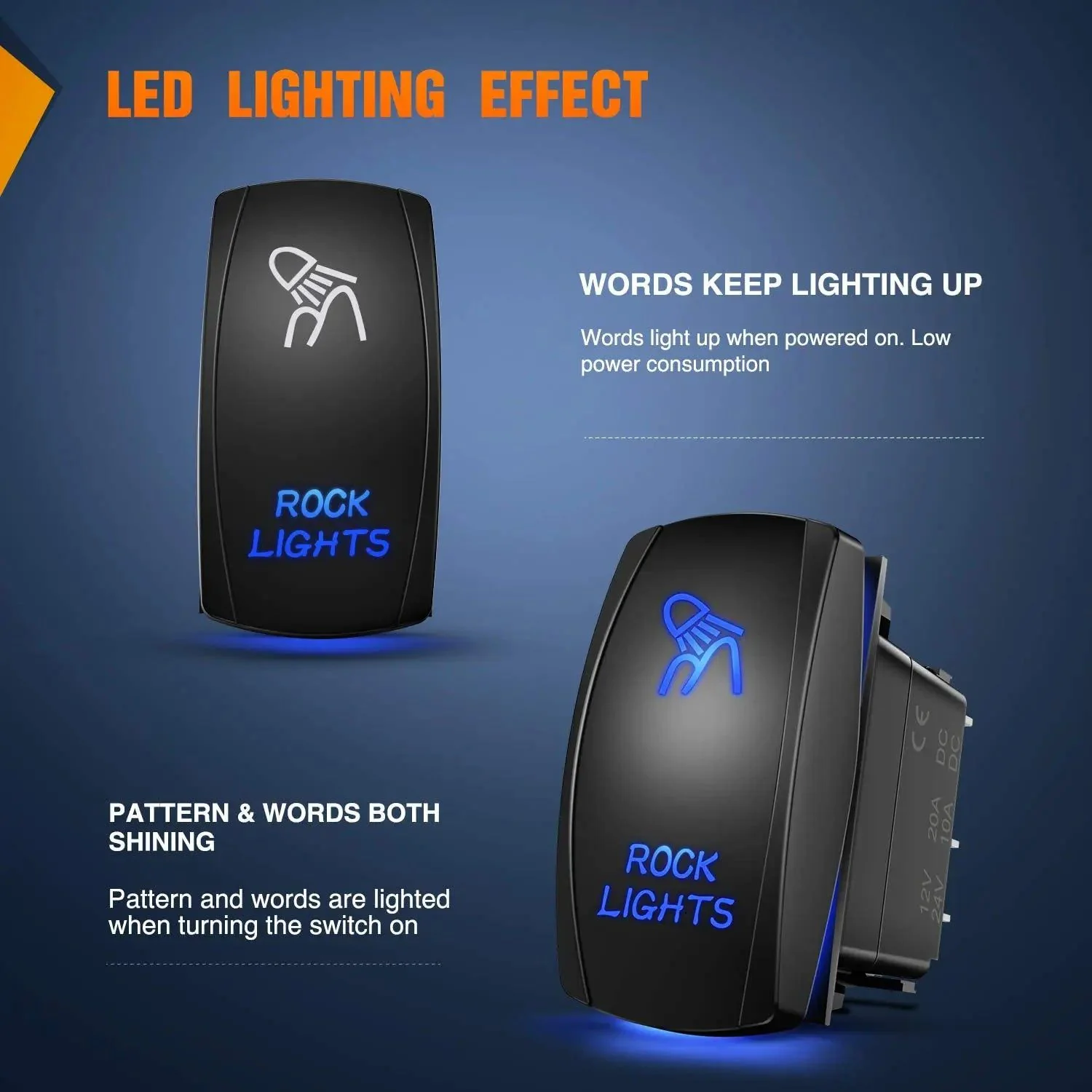 Easy to install and use: 5 pins on-off rocker switch with SPST design (single pole single Throw), simple installation, freely turn on or off the light.
