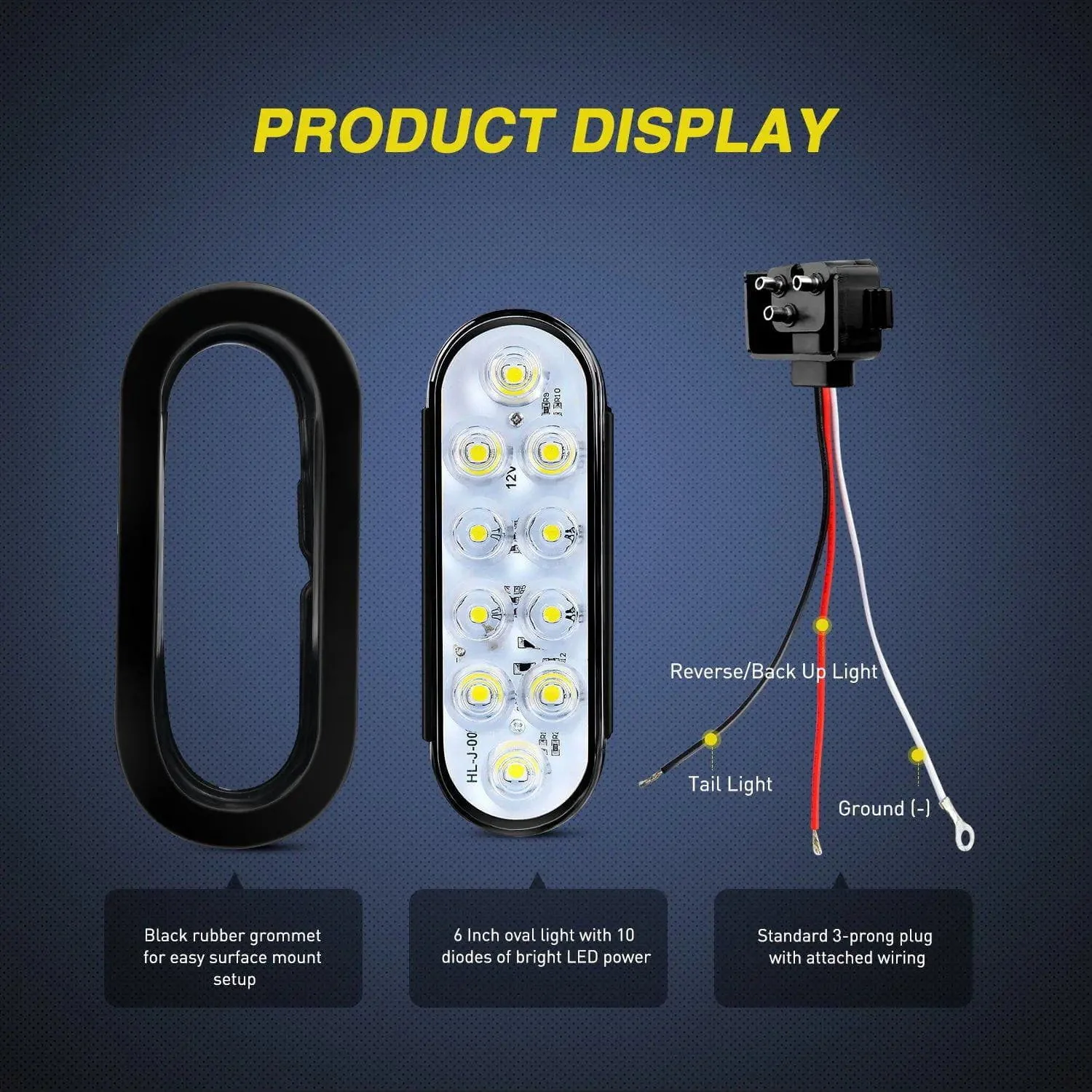 Each light has 10PCS high-quality SMD LEDs to output super bright red light. It comes with a surface mount grommet and standard 3-prong plug with attached wire for easy installation. Can work perfectly as a reverse/backup/rear light or tail light for your vehicle.