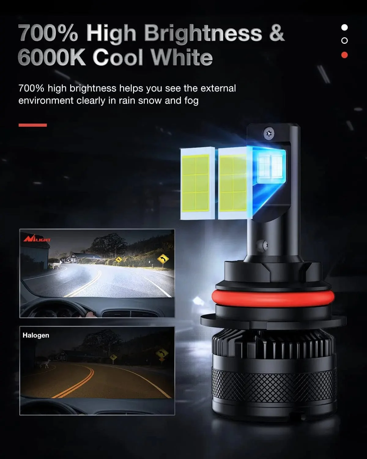 - 700% Brighter Than Halogen: Abandon dim yellow halogen bulbs and use ultra-focused Nilight 6000K 9004 headlight bulbs. It is 7 times brighter than halogen bulbs, allowing you to see farther and clearer and enhancing your confidence in night driving