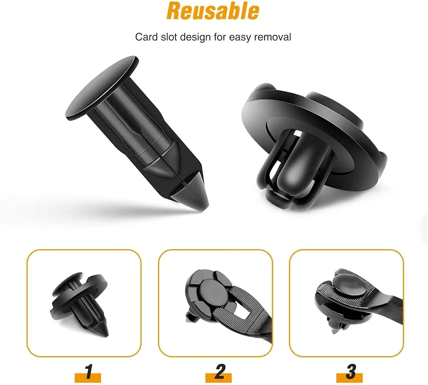 - Universal Plastic Clips: Be widely used for door trim, radiator shield yoke, fender, bumper, grille and splash shield retainer replacement