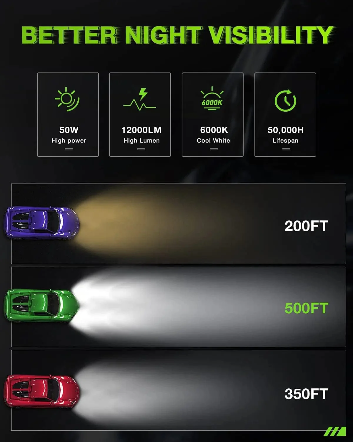 - Longer Lifespan: Adopt aircraft grade aluminum and 1,2000RPM silent turbofan down the heat efficiently, which makes the bulbs more energy saving than halogen and can service your car more than 50,000 hours.